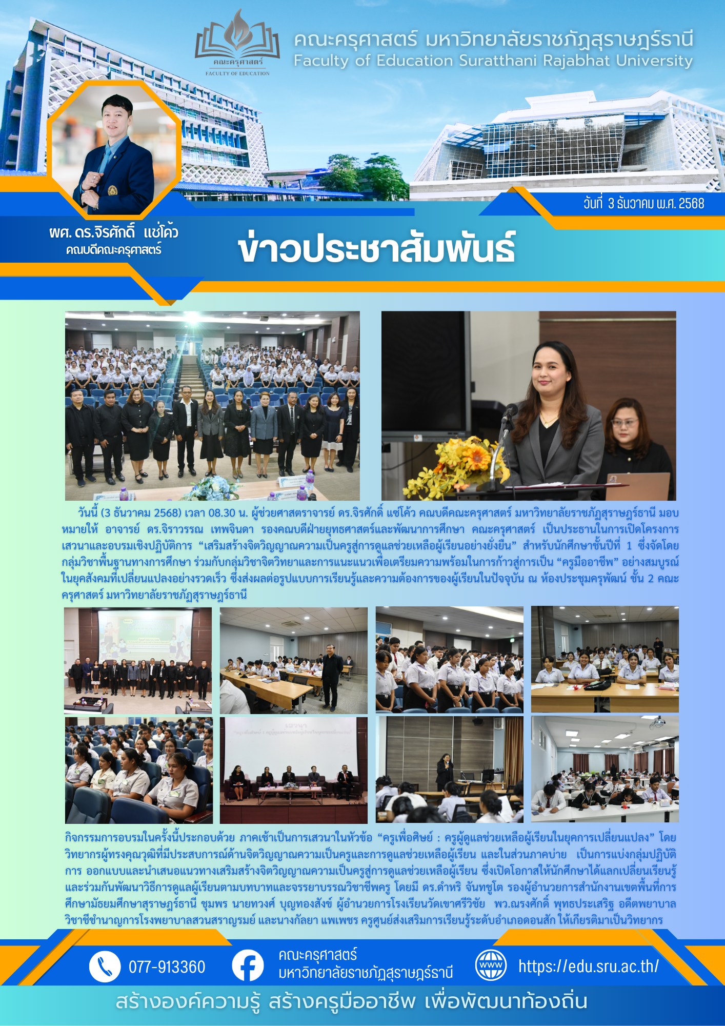 | โครงการ เสวนาและอบรมเชิงปฏิบัติการ “เสริมสร้างจิตวิญญาณความเป็นครูสู่การดูแลช่วยเหลือผู้เรียนอย่างยั่งยืน” | December 3, 2025 | คณะครุศาสตร์ | SDG 4 | sdg-4 |