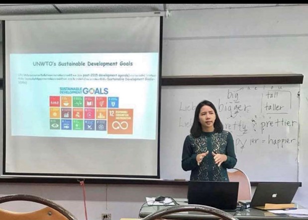 รายวิชานี้มุ่งเน้นการสร้างความเข้าใจเกี่ยวกับแนวคิด หลักการการพัฒนาที่ยั่งยืน การจัดการการท่องเที่ยวอย่างยั่งยืน และเป้าหมายการพัฒนาที่ยั่งยืน ทั้ง 17 เป้าหมาย (Sustainable Development Goals: SDGs) ของสหประชาชาติ (UN) โดยการจัดโครงการ “อบรมการวางแผนการจัดการแหล่งท่องเที่ยวโดยชุมชนอย่างยั่งยืน” ซึ่งสามารถตอบโจทย์ SDG 17 ในด้านความร่วมมือเพื่อการพัฒนาที่ยั่งยืน (Partnerships for the goals) ส่งเสริมกิจกรรมให้นักศึกษาและสมาชิก