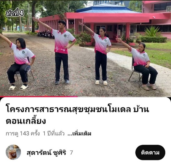 3. การดำเนินการโครงการ ได้มีการจัดกิจกรรมสร้าง VDO clip โดยมีเนื้อหาหลักๆเกี่ยวกับความรู้เกี่ยวกับโรคไม่ติดต่อเรื้อรัง รวมทั้งการประยุกต์หลัก 3อ2ส มาใช้ในการดูแลตนเอง พร้อมทั้งการประเมินโครงการ