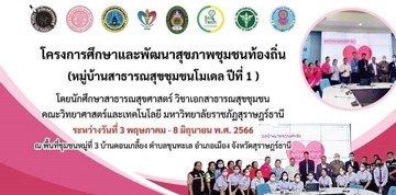 คณะวิทยาศาสตร์และเทคโนโลยี มหาวิทยาลัยราชภัฏสุราษฎร์ธานี ได้จัด “โครงการศึกษาและส่งเสริมสุขภาพชุมชนท้องถิ่น (สาธารณสุขชุมชนโมเดลปีที่1)” โดยมีวัตถุประสงค์เพื่อเพิ่มเสริมประสบการณ์ตรงให้นักศึกษาให้ได้เรียนรู้การทำงานบริการวิชาการด้านสุขภาพในสถานการณ์จริงนอกเหนือจากการจัดการเรียนการสอนภายในรั้วมหาวิทยาลัย โครงการนี้เป็นโครงการที่นักศึกษาและคณะอาจารย์ได้ร่วมกันระดมความคิดและออกแบบโครงการเพื่อให้นักศึกษาและทุกภาคส่วนอันจะทำเกิดการเรียนรู้ร่วมกันด้านสุขภาพในพื้นที่