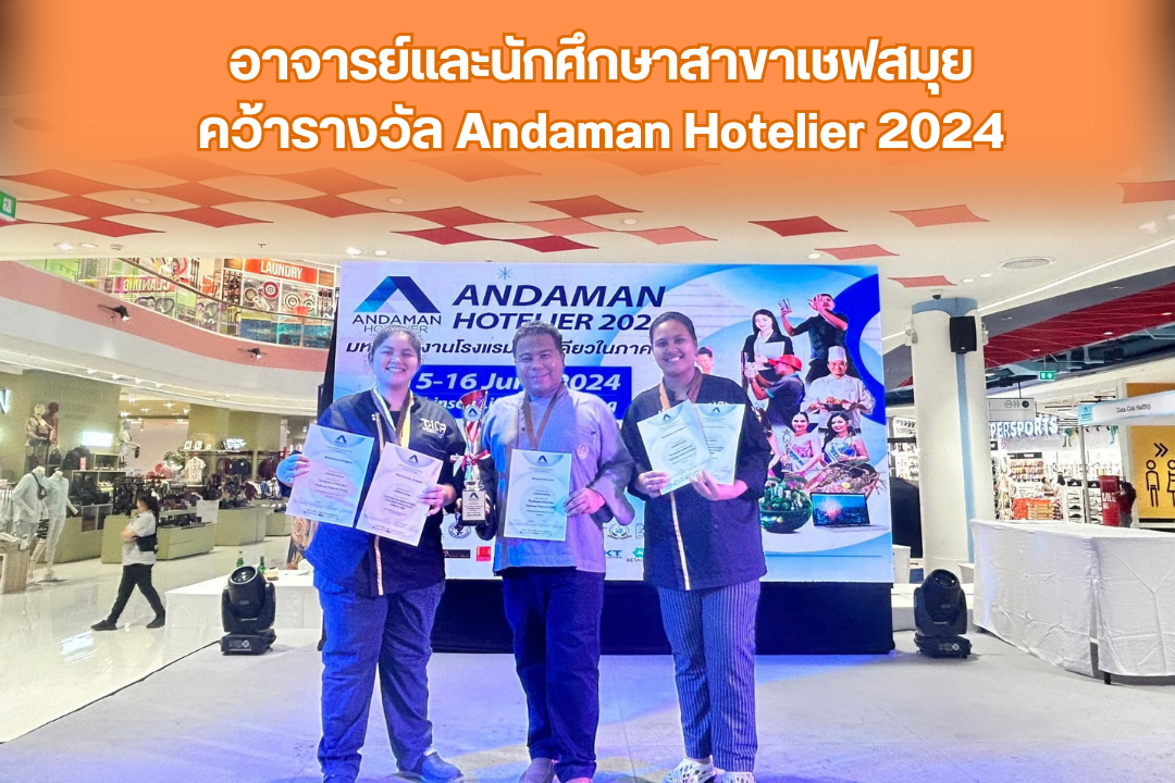 อาจารย์และนักศึกษาสาขาเชฟสมุยคว้ารางวัล Andaman Hotelier 2024June 16, 2024, , , sdg-12 sdg-17 sdg-4 sdg-8