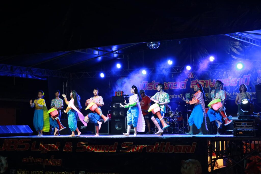 วันนี้ (๒๖ มิถุนายน ๒๕๖๗) สำนักศิลปะและวัฒนธรรม มหาวิทยาลัยราชภัฏสุราษฎร์ธานี ร่วมกับโรงเรียนราชประชานุเคราะห์ ๖๔ จังหวัดสุราษฎร์ธานี สนับสนุนการแสดงศิลปวัฒนธรรมชุด “รำกลองยาว” ร่วมแสดงในพิธีเปิดงานประเพณีทอดผ้าป่าสามัคคี ประจำปี ๒๕๖๗ ณ วัดภูธรอุทิศ ตำบลขุนทะเล อำเภอเมือง จังหวัดสุราษฎร์ธานี