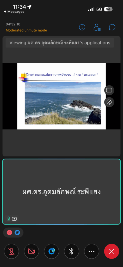 โครงการพัฒนาศักยภาพนักศึกษาสาขาวิชาภาษาไทย กิจกรรมที่ 4 การอบรมให้ความรู้เรื่องท่วงทำนองร้อยกรอง ผ่านระบบออนไลน์ Cisco Webex Meetings