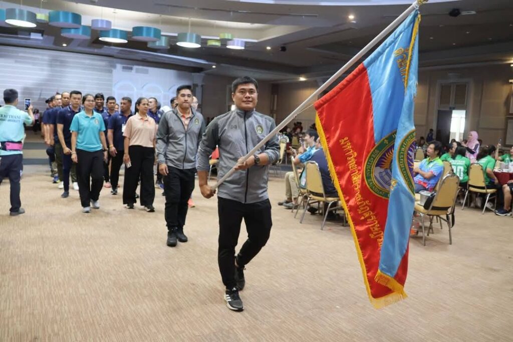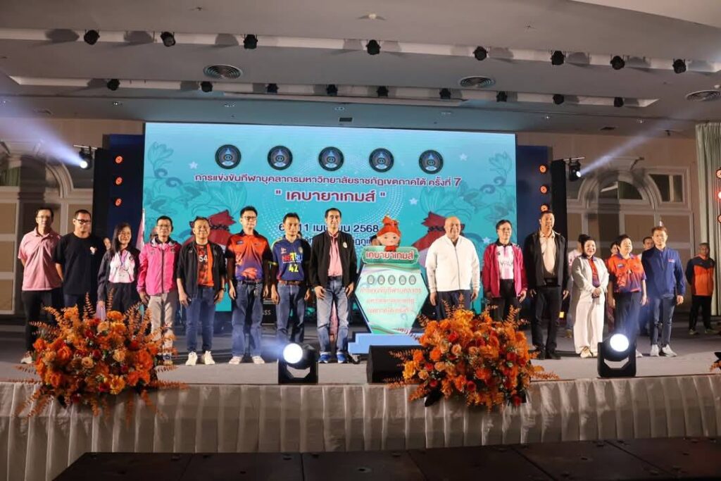 เมื่อวันที่ 8 เมษายน 2568 ผศ.ดร.วัฒนา รัตนพรหม อธิการบดีมหาวิทยาลัยราชภัฏสุราษฎร์ธานี (มรส.) ได้มอบหมายให้ ดร.พลกฤต แสงอาวุธ รองอธิการบดีฝ่ายกิจการนักศึกษาและศิษย์เก่าสัมพันธ์ พร้อมด้วยคณะผู้บริหารและนักกีฬาของ มรส. เข้าร่วม พิธีเปิดการแข่งขัน “เคบายาเกมส์” กีฬาบุคลากรมหาวิทยาลัยราชภัฏเขตภาคใต้ ครั้งที่7 การแข่งขันจัดขึ้นระหว่างวันที่ 6 – 11 เมษายน 2568 ณ มหาวิทยาลัยราชภัฏภูเก็ต โดยบรรยากาศในพิธีเปิดเต็มไปด้วยความคึกคัก นักกีฬาทุกสถาบันพร้อมใจกันแต่งกายด้วยชุดประจำทีมอย่างสง่างาม เดินพาเหรดเข้าสู่สนามด้วยรอยยิ้มและพลังแห่งความสามัคคี