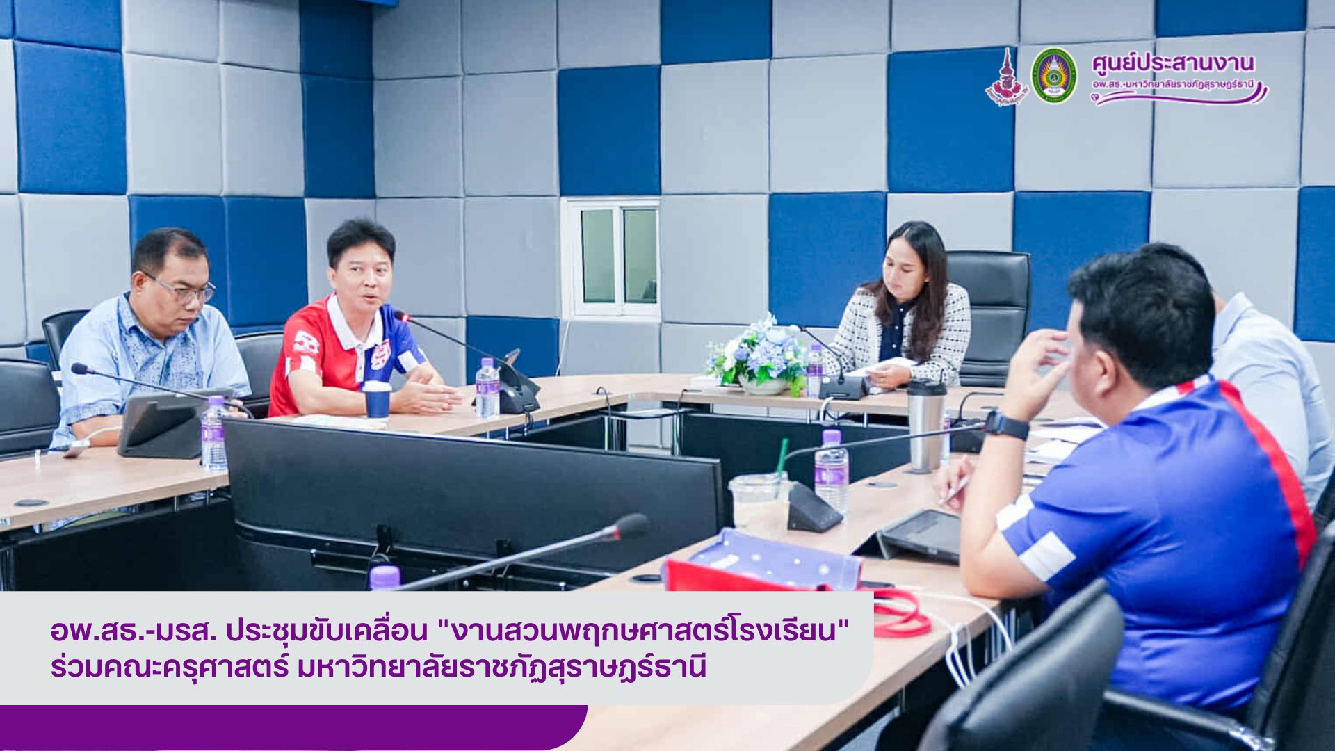 วันที่ 24 ตุลาคม 2568 ผู้ช่วยศาสตราจารย์ ดร.เสน่ห์ บุญกำเนิด รองอธิการบดี ปฏิบัติหน้าที่ผู้อำนวยการศูนย์ประสานงาน อพ.สธ.-มหาวิทยาลัยราชภัฏสุราษฎร์ธานี นายอรุณ หนูขาว หัวหน้าสำนักงาน และบุคลากรศูนย์ประสานงาน อพ.สธ.-มหาวิทยาลัยราชภัฏสุราษฎร์ธานี พร้อมด้วย ดร.ศักดิ์ชัย กรรมารางกูร ผู้ช่วยอธิการบดีฝ่ายขับเคลื่อนโครงการตามพระราชดำริ เข้าร่วมการประชุมขับเคลื่อน “งานสวนพฤกษศาสตร์โรงเรียน” ร่วมกับ ดร.จิราวรรณ เทพจินดา รองคณบดีฝ่ายยุทธศาสตร์และพัฒนาการศึกษา พร้อมด้วยประธานหลักสูตร และอาจารย์คณะครุศาสตร์ เข้าร่วมการประชุมเพื่อทำความเข้าใจการดำเนินงานสวนพฤกษศาสตร์โรงเรียน ณ ห้องประชุมกัลยาณมิตร ชั้น 5 คณะครุศาสตร์ มหาวิทยาลัยราชภัฏสุราษฎร์ธานี