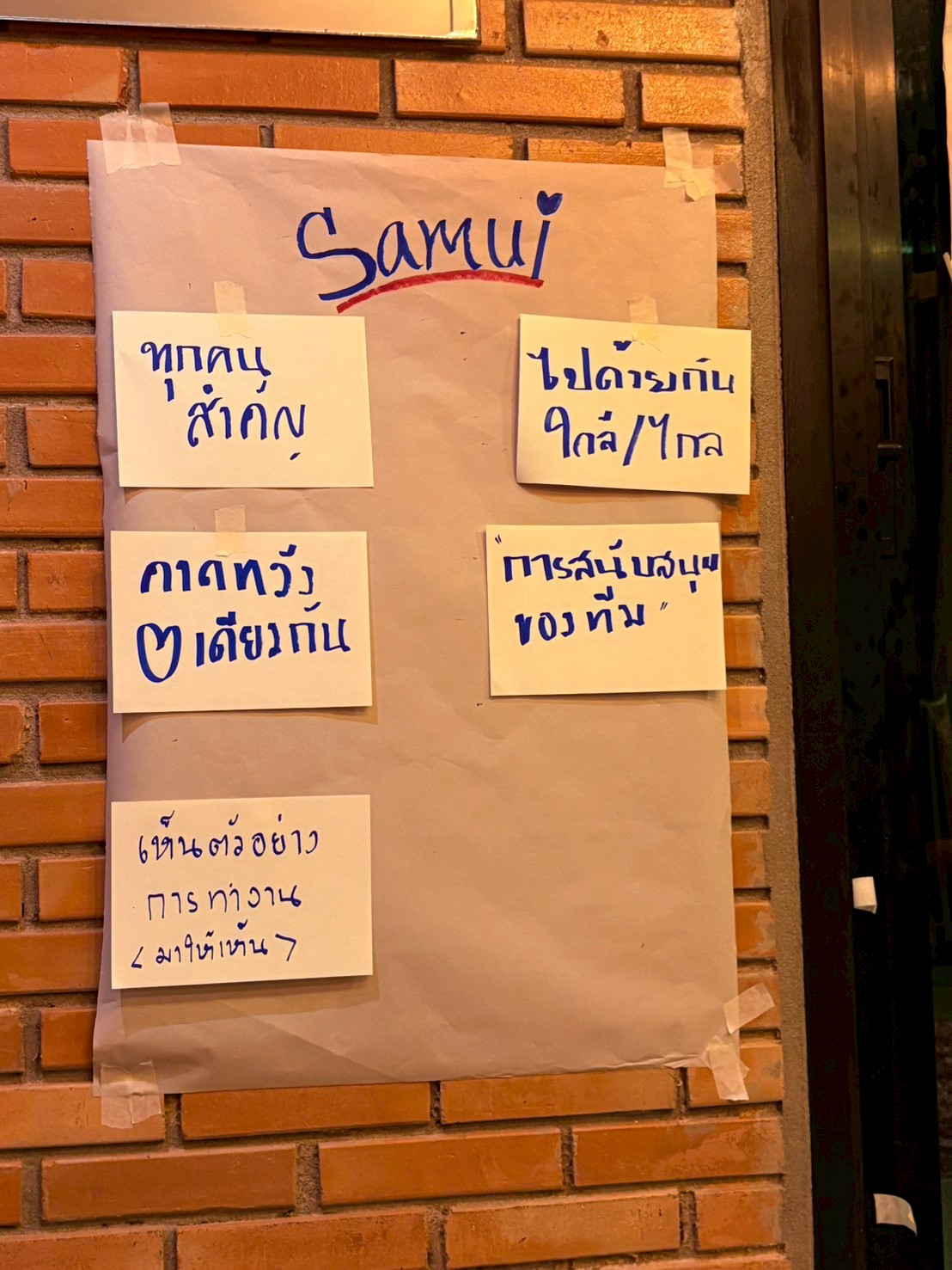 กิจกรรมทั้งหมดปิดท้ายด้วยการประชุมกลุ่มแบบ Focus Group เพื่อถอดบทเรียน และวางแนวทางการนำองค์ความรู้ไปประยุกต์ใช้กับงานวิชาการ การเรียนการสอน และการพัฒนาชุมชนเกาะสมุย