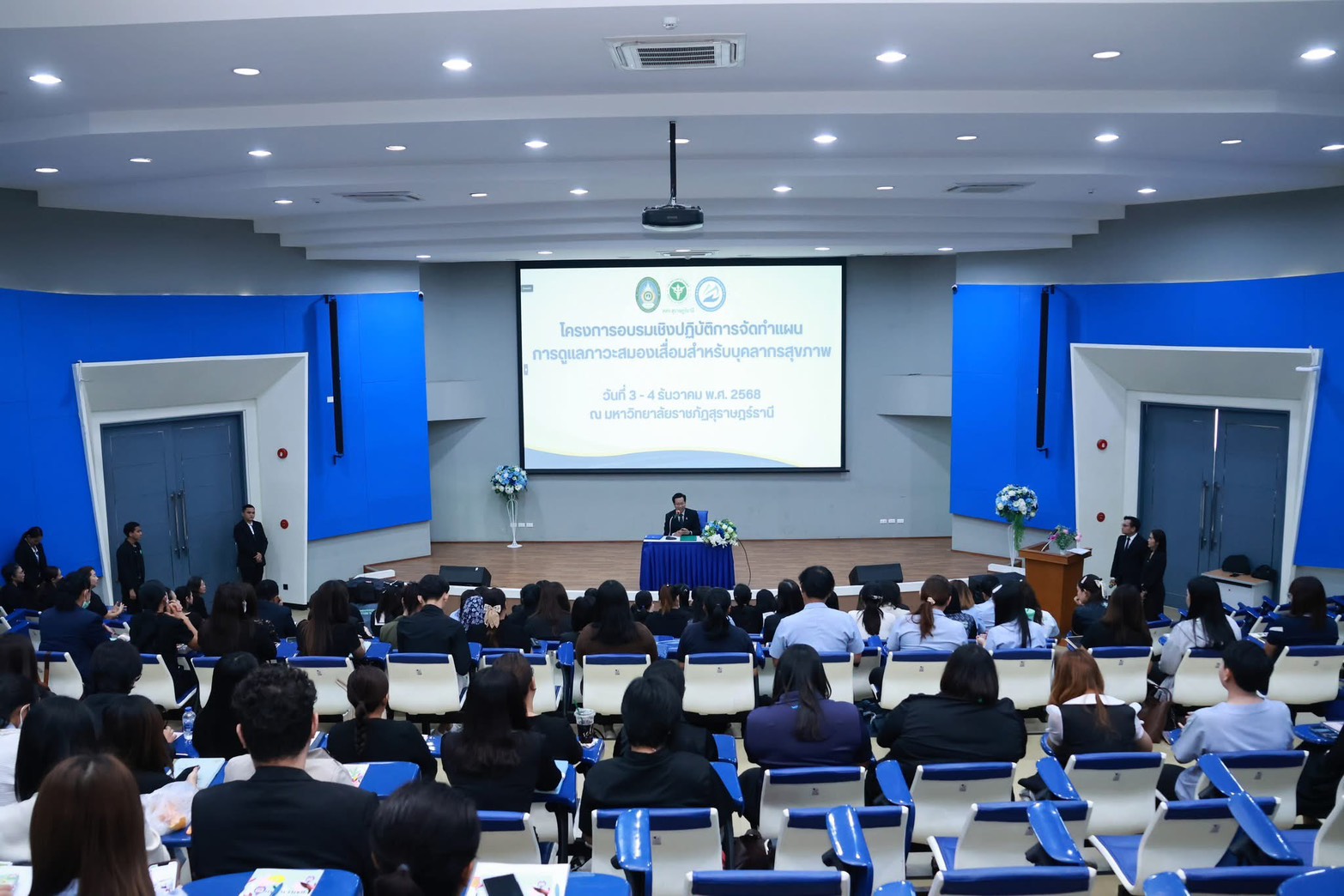 กิจกรรมจัดขึ้นระหว่างวันที่ 3-4 ธันวาคม 2568 ณ ห้องประชุมภูมิพลินทร์ คณะวิทยาการจัดการ มรส. โดยมีบุคลากรสาธารณสุข แพทย์ พยาบาล เจ้าหน้าที่ดูแลผู้สูงอายุ และผู้ปฏิบัติงานที่เกี่ยวข้อง เข้าร่วมกว่า 135 คน สะท้อนความร่วมมือเข้มแข็งของทุกภาคส่วนในการขับเคลื่อนระบบดูแลผู้สูงอายุของจังหวัดให้มีประสิทธิภาพมากยิ่งขึ้น