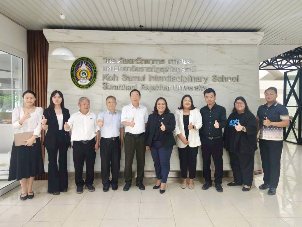 วิทยาลัยสหวิทยาการ เกาะสมุย มหาวิทยาลัยราชภัฏสุราษฎร์ธานี นำโดย ดร.จันทร์พร ช่วงโชติ คณบดีวิทยาลัยสหวิทยาการ เกาะสมุย พร้อมด้วยคณาจารย์และบุคลากร ให้การต้อนรับคณะผู้บริหารและฝ่ายวิเทศจาก Guangdong University of Business and Technology สาธารณรัฐประชาชนจีน ในโอกาสเดินทางมาเยือนเพื่อหารือแนวทางความร่วมมือทางวิชาการระหว่างสองสถาบัน