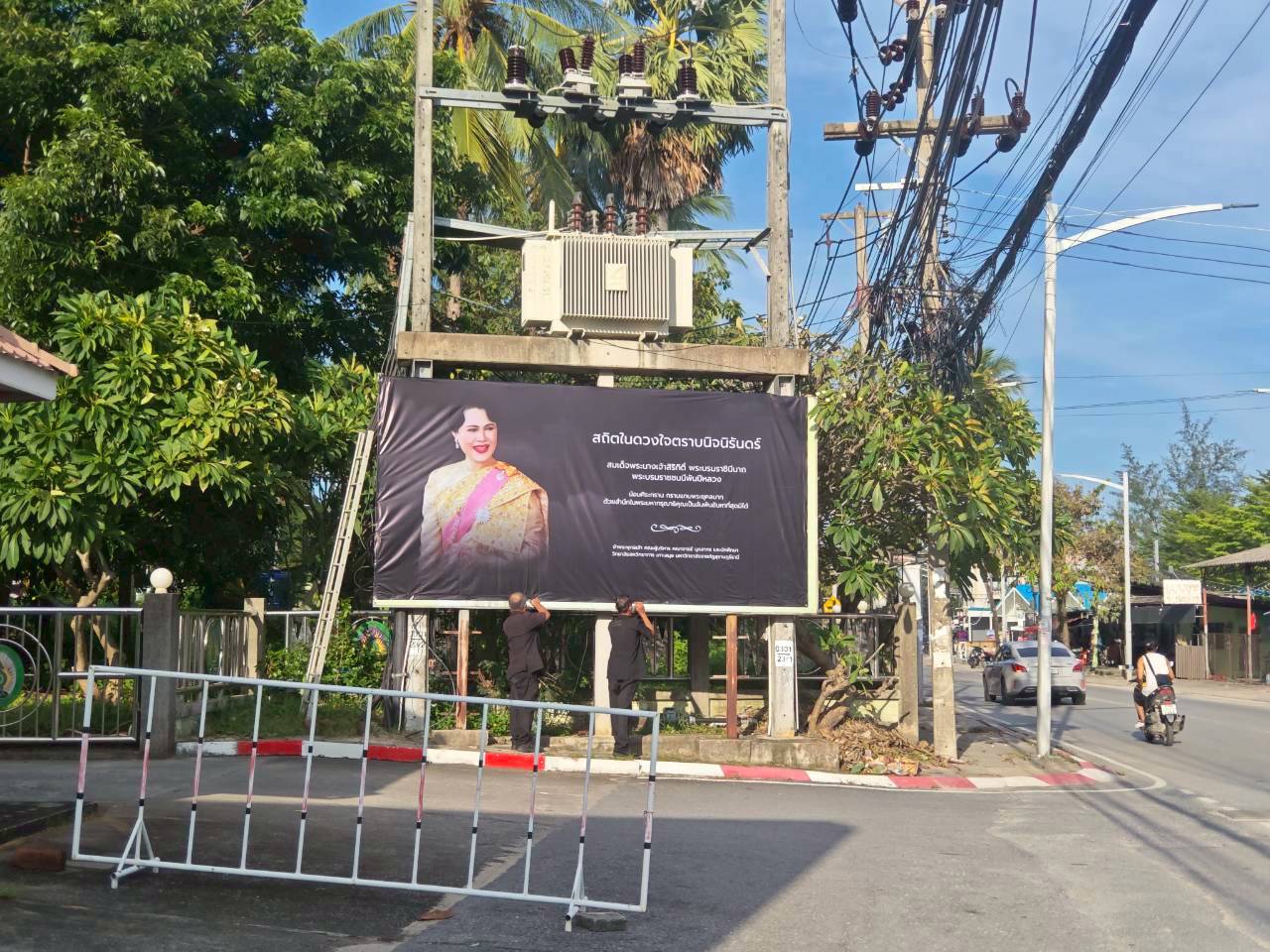 วิทยาลัยสหวิทยาการ เกาะสมุย ติดตั้งป้ายไวนิลแสดงความอาลัย พระบาทสมเด็จพระบรมราชชนนีพันปีหลวง