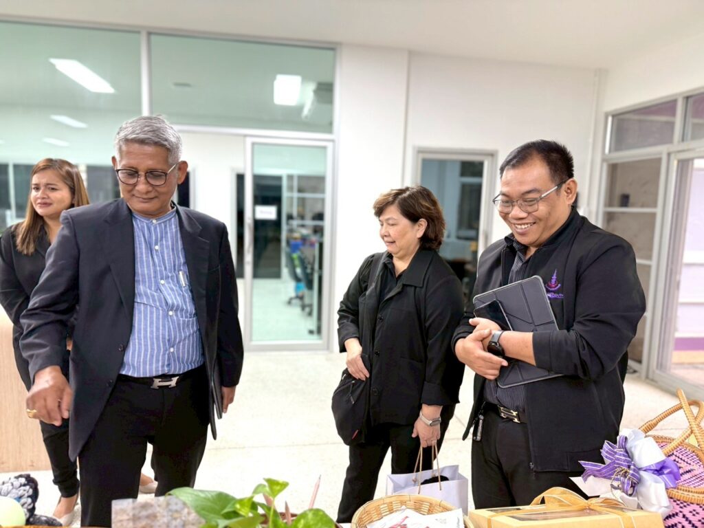 ในการนี้ ผู้ช่วยศาสตราจารย์ ดร.เสน่ห์ บุญกำเนิด รองอธิการบดี ปฏิบัติหน้าที่ผู้อำนวยการศูนย์ประสานงาน อพ.สธ.–มหาวิทยาลัยราชภัฏสุราษฎร์ธานี พร้อมด้วยคณะผู้บริหารและบุคลากรของศูนย์ประสานงาน อพ.สธ. ให้การต้อนรับ ณ ห้องสำนักงานศูนย์ประสานงาน อพ.สธ.–มรส. อาคารศูนย์ประสานงาน อพ.สธ.–มรส. มหาวิทยาลัยราชภัฏสุราษฎร์ธานี