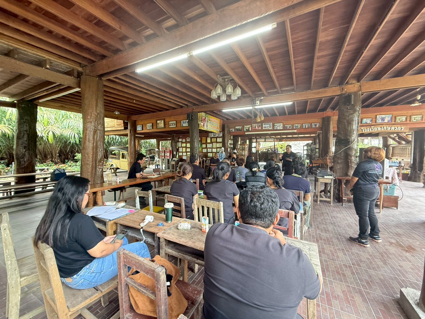 วันพุธ ที่ 12 พฤศจิกายน 2568 ผู้ช่วยศาสตราจารย์ ดร.วัฒนา รัตนพรหม อธิการบดีมหาวิทยาลัยราชภัฏสุราษฎร์ธานี มอบหมายให้ ผู้ช่วยศาสตราจารย์เสน่ห์ บุญกำเนิด รองอธิการบดี ปฏิบัติหน้าที่ ผู้อำนวยการศูนย์ประสานงาน อพ.สธ.-มหาวิทยาลัยราชภัฏสุราษฎร์ธานี และนายอรุณ หนูขาว หัวหน้าสำนักงานศูนย์ประสานงานอพ.สธ.-มหาวิทยาลัยราชภัฏสุราษฎร์ธานี พร้อมด้วยคณาจารย์ผู้ดำเนินโครงการยกระดับการท่องเที่ยวโดยชุมชนภายใต้ผลไม้อัตลักษณ์ภาคใต้(เงาะนาสาร) สุราษฎร์ธานีเพื่อการพัฒนาที่ยั่งยืน ลงพื้นที่ ณ สวนสละอาทิตย์ อำเภอนาสาร จังหวัดสุราษฎร์ธานี เพื่อดำเนินการจัดประชุมกลุ่มย่อย (Focus Group) โดยมีกลุ่มเกษตรกรชาวสวนเงาะนาสารและผู้สังเกตการณ์เข้าร่วมประชุม จำนวน 23 คน