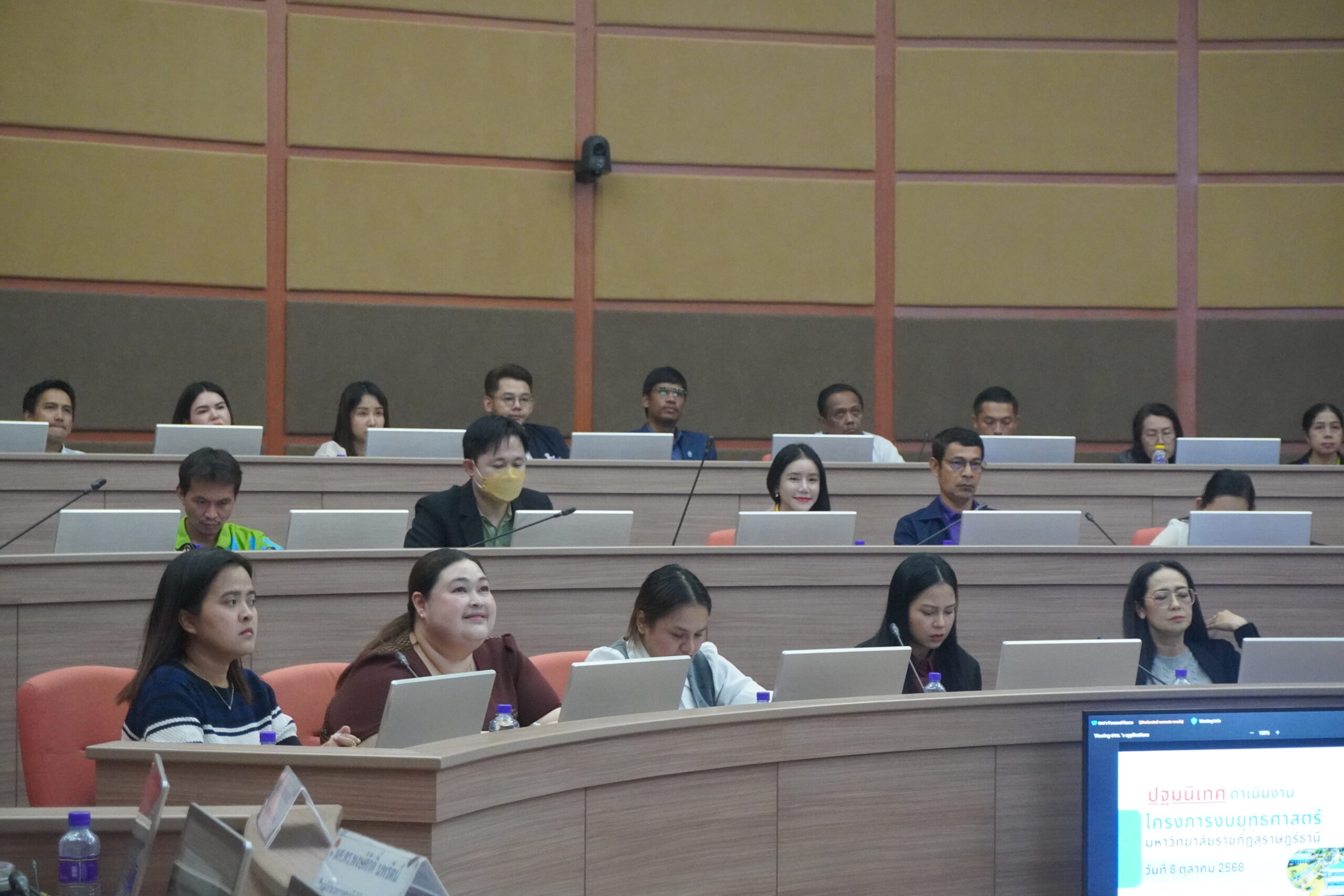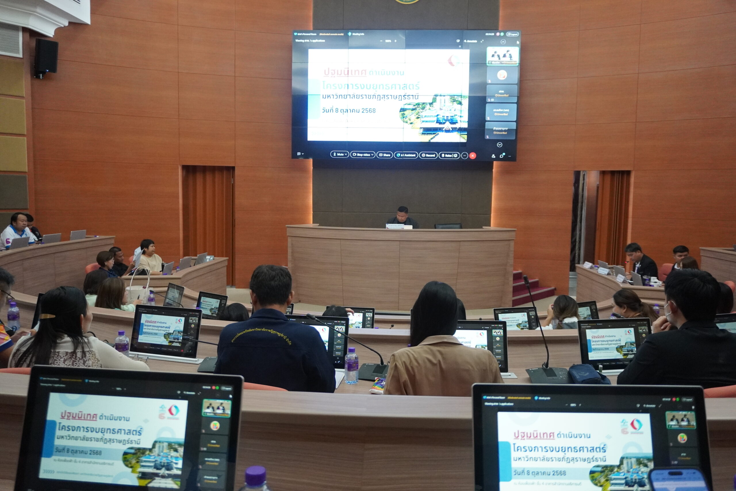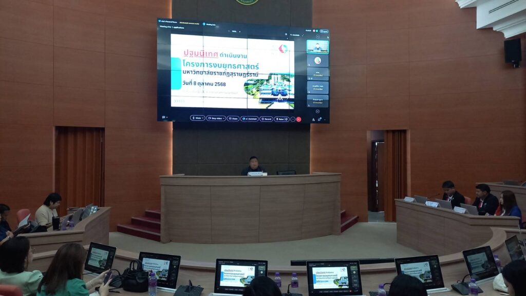 และในช่วงเวลา 10.30 น. ได้จัดการปฐมนิเทศการดำเนินงานโครงการงบยุทธศาสตร์ มหาวิทยาลัยราชภัฏสุราษฎร์ธานี เพื่อการพัฒนาท้องถิ่น ประจำปีงบประมาณ พ.ศ. 2569 โดยมีวัตถุประสงค์เพื่อให้นักวิจัยที่ได้รับทุนสนับสนุนสามารถดำเนินโครงการได้อย่างถูกต้อง เพื่อให้เป็นไปตามระเบียบ ตามขั้นตอน และตามระยะเวลาที่กำหนด ทั้งนี้เพื่อให้ผลการดำเนินงานเกิดประสิทธิภาพสูงสุด และสะท้อนผลลัพธ์เชิงประจักษ์ที่สนับสนุนพันธกิจของมหาวิทยาลัยใน การพัฒนาท้องถิ่นอย่างแท้จริง