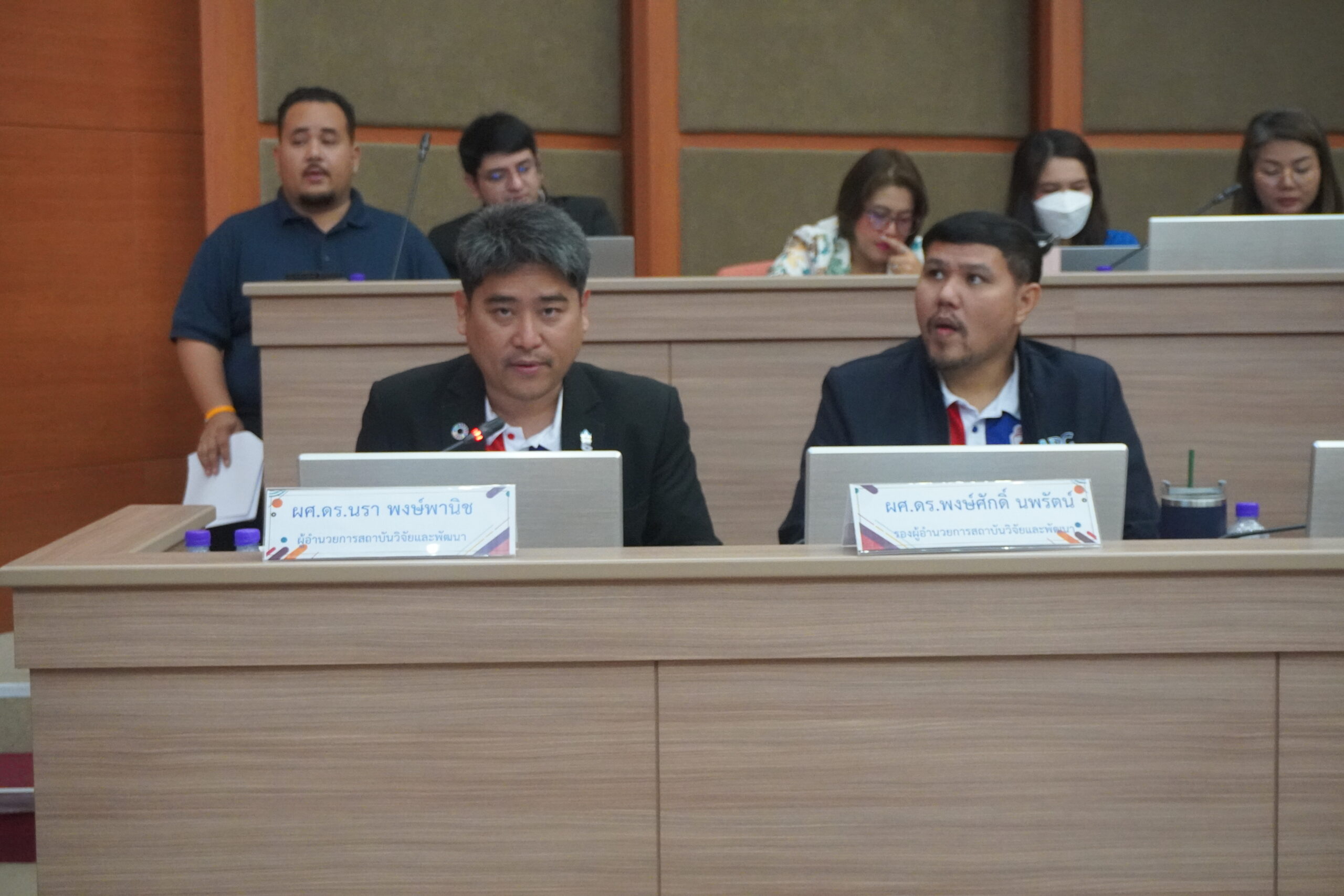 วันที่ 8 ตุลาคม 2568 เวลา 09.00 น. ดร.สมปราชญ์ วุฒิจันทร์ รองอธิการบดีฝ่ายพัฒนางานวิจัยและนวัตกรรม ให้เกียรติเป็นประธานเปิดการชี้แจงแนวทางการจัดอบรมเชิงปฏิบัติการ “การพัฒนางานวิจัยและบริการวิชาการด้วยกระบวนการวิศวกรสังคม” พร้อมด้วย ผู้ช่วยศาสตราจารย์ ดร.นรา พงษ์พานิช ผู้อำนวยการสถาบันวิจัยและพัฒนา ผู้ช่วยศาสตราจารย์ ดร.พงษ์ศักดิ์ นพรัตน์ และผู้ช่วยศาสตราจารย์ ดร.ธัญญาภัส ทองมุสิทธิ์ รองผู้อำนวยการสถาบันวิจัยและพัฒนา เพื่อมุ่งพัฒนาศักยภาพนักวิจัยและบุคลากรทางวิชาการให้มีความรู้ ความเข้าใจ และทักษะในการประยุกต์ใช้กระบวนการวิศวกรสังคมอย่างถูกต้อง โดยเน้นการทำงานแบบมีส่วนร่วม การวิเคราะห์ปัญหาเชิงระบบ การออกแบบกิจกรรมที่ตอบโจทย์ชุมชน และการพัฒนานวัตกรรมทางสังคมที่สามารถนำไปใช้ได้จริง เพื่อขับเคลื่อนการเปลี่ยนแปลงอย่างสร้างสรรค์และยั่งยืน ณ ห้องเฟื่องฟ้า ชั้น 4 อาคารสำนักงานอธิการบดี