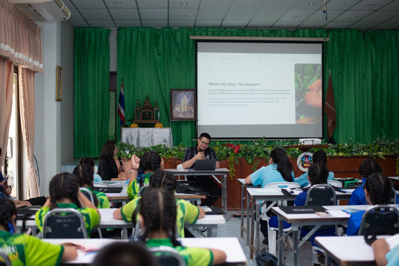 ตลอดกระบวนการดำเนินงาน นักศึกษาได้ร่วมออกแบบกิจกรรมกับครูและเยาวชนในพื้นที่ ตั้งแต่การพัฒนาผลิตภัณฑ์ของที่ระลึก การฝึกทักษะการนำเสนอ ไปจนถึงการจัดแสดงและจำหน่ายผลงานในงาน “Khao Sok Student Art & Craft Fair” ซึ่งถือเป็นเวทีการเรียนรู้จริงที่ช่วยเสริมสร้างทักษะการทำงานเป็นทีม การแก้ปัญหาเฉพาะหน้า และความรับผิดชอบต่อสังคม