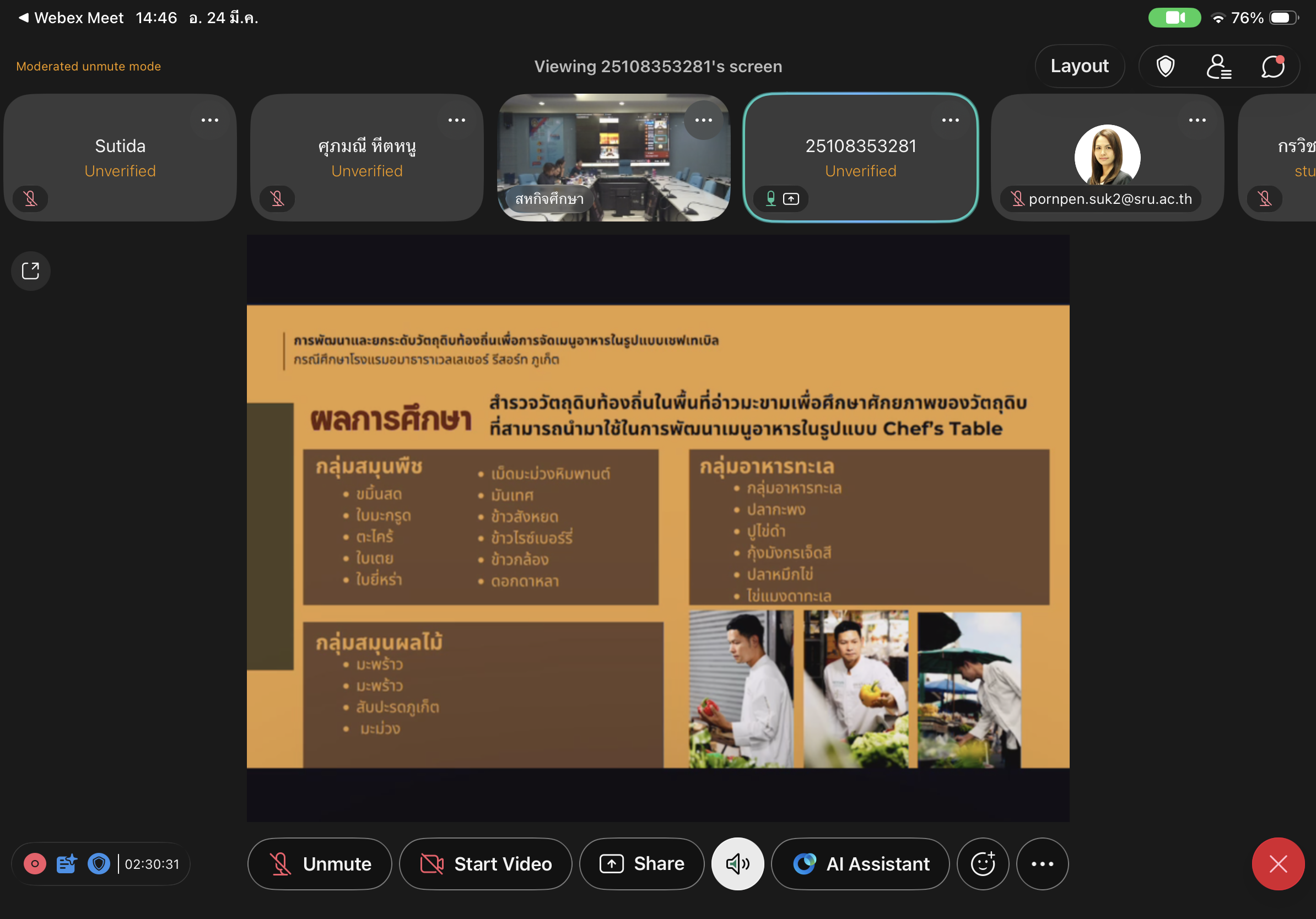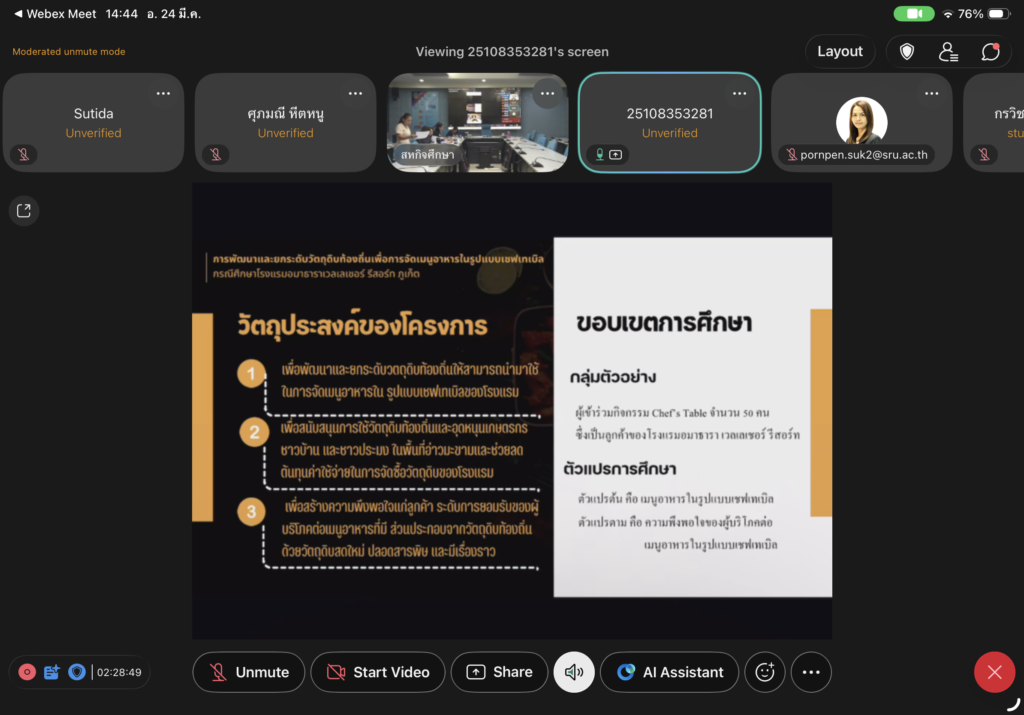 สำหรับผลงานที่ได้รับรางวัล คือ “การพัฒนาและยกระดับวัตถุดิบท้องถิ่นเพื่อการจัดเมนูอาหารในรูปแบบเชฟเทเบิล กรณีศึกษาโรงแรมอมาธาราเวลเลย์เชอร์ รีสอร์ท จังหวัดภูเก็ต” โดยมุ่งเน้นการนำวัตถุดิบท้องถิ่นมาสร้างสรรค์เมนูอาหารในรูปแบบร่วมสมัย สอดคล้องกับแนวทางการท่องเที่ยวเชิงอาหาร และการเพิ่มมูลค่าทรัพยากรในพื้นที่