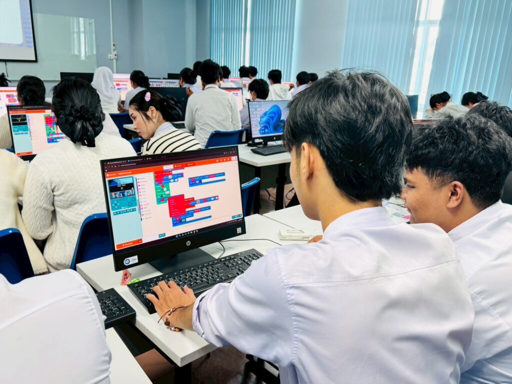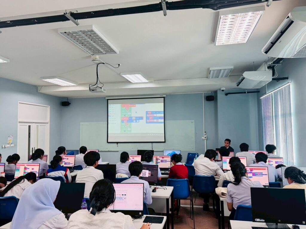 กิจกรรมทั้ง ๒ วันเน้นการฝึกปฏิบัติจริงบนโปรแกรม MakeCode Arcade โดยวันแรกนักศึกษาจะได้เรียนรู้หลักการสร้างตัวละคร การเขียนคำสั่งควบคุม การออกแบบฉาก และสร้างมินิเกม “ปลาใหญ่กินปลาเล็ก” พร้อมนำเสนอผลงานในรูปแบบ Mini Presentation ส่วนวันที่สองต่อยอดด้วยการออกแบบเกมคิดเลขเร็วและเกมข้ามถนน ก่อนปิดท้ายด้วยการนำเสนอ Mini Project และแข่งขันเล่นเกม